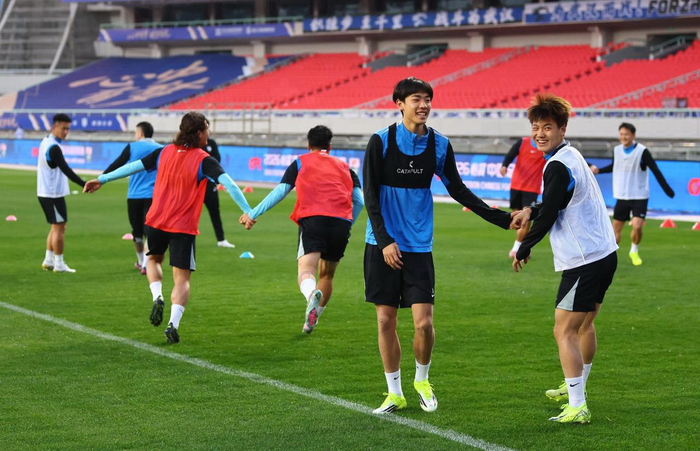 中超大连英博PK武汉三镇踩场11张图片分享,玩配对,看看谁牵了谁的手?
