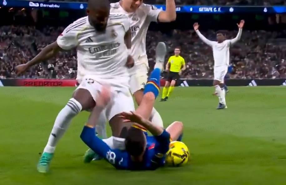 上赛季的一场国家德比中,在佩德里倒地后,吕迪格膝盖用力顶佩德里的背部,并用鞋子踢到他的头部,这一画面或许是最接近他本周一对迭戈-里科所做动作的。